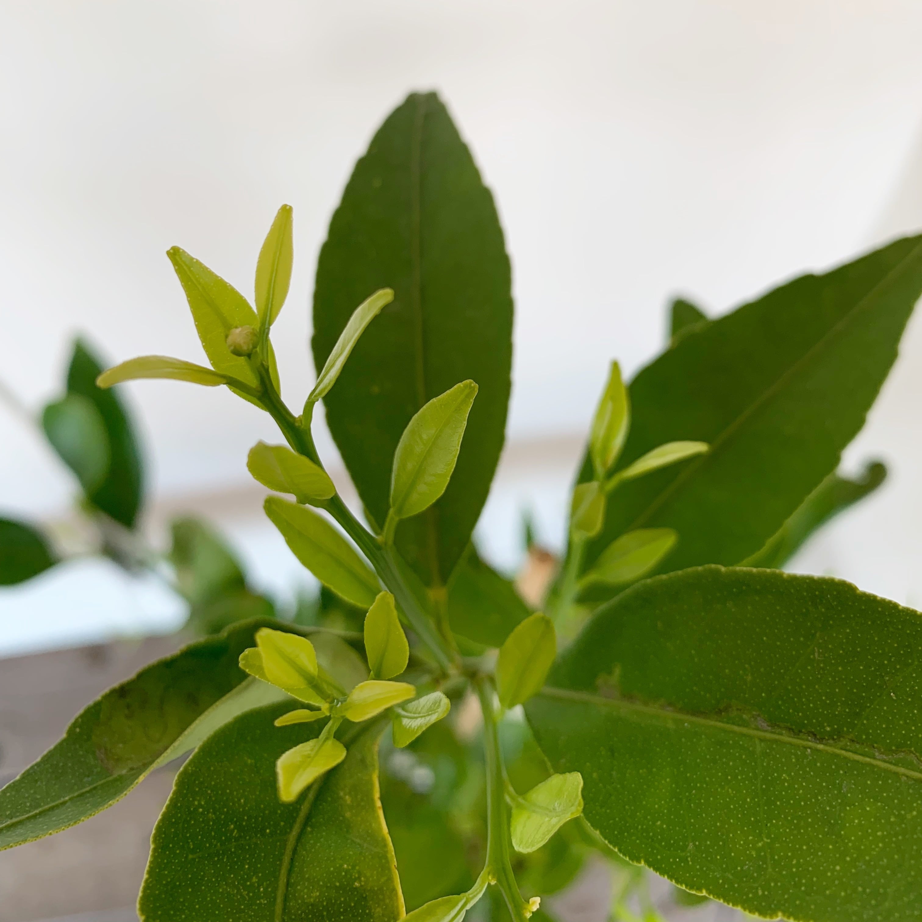 樹高約3mほどになり、葉は5cmほどの楕円形で、濃い緑色で表面には光沢があります。